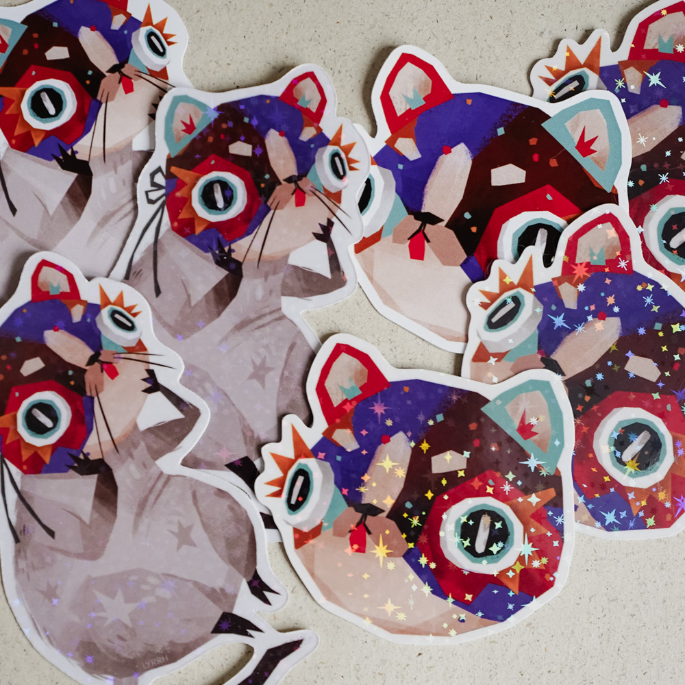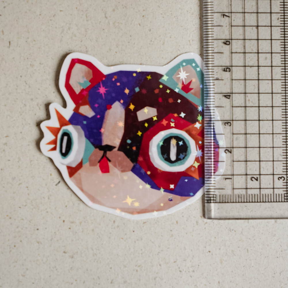 Wodoodporna naklejka dostępna w dwóch wersjach: z laminatem w holograficzne gwiazdki lub bez laminatu. Autorska ilustracja – stworzona przeze mnie od podstaw. To unikatowy wzór, dostępny wyłącznie w moim sklepie. Posiada białą oblamówkę. Naklejka przeznaczona do dekorowania przedmiotów codziennego użytku o gładkiej powierzchni, takich jak: zeszyty, laptopy, telefony, itp. Należy dokładnie odtłuścić/oczyścić powierzchnię, na którą będzie przyklejana naklejka. Produkt nieprzeznaczony do kontaktu z żywnością ani do przyklejania bezpośrednio na skórę. Materiał: Winyl